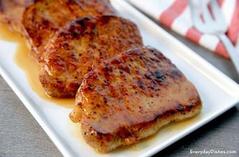 When the pork is cooked through (if you want to test with a thermometer, it should be about 140-145° internal temperature.) Remove pork to a cutting board to rest and cover with loosely with a sheet of aluminum foil to help retain the heat while it rests.