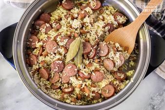 Add the ground pork, garlic powder, onion powder, and dried oregano to the pot and cook for 5 to 6 minutes, making sure to break the pork apart with a wooden spoon as you cook.